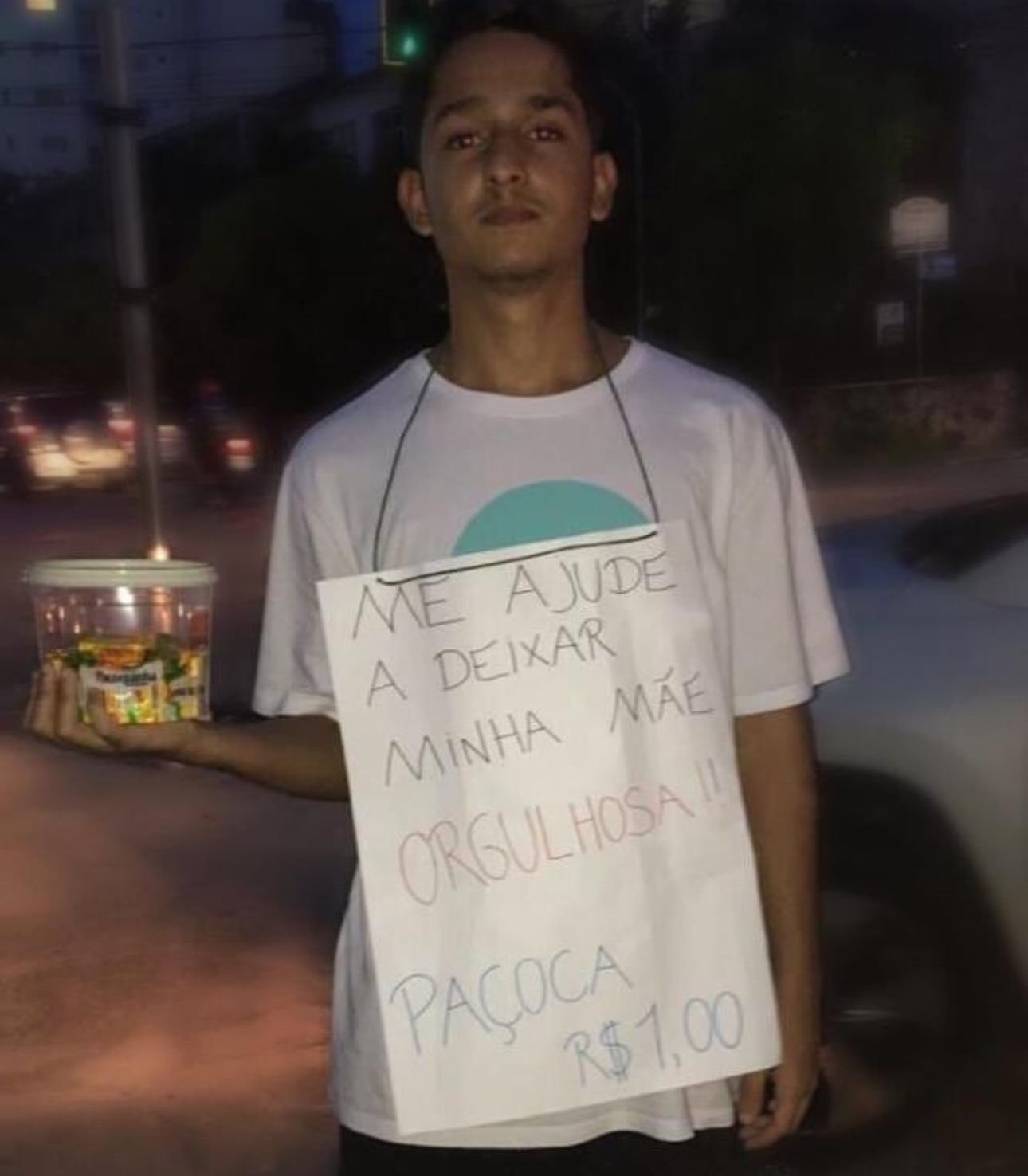 Vendendo paçoca no sinal